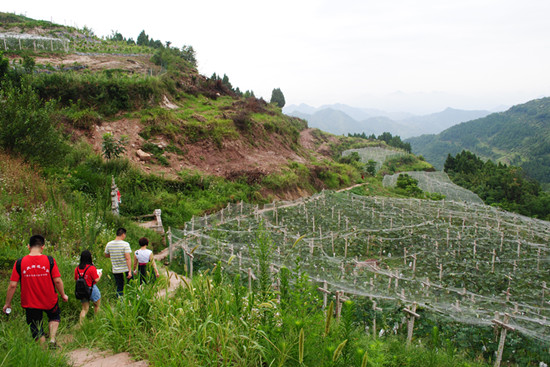 除了林久农牧,第四小组所前往的香榧、葡萄园也拥有巨大的优势。 第四小组的成员翻山越岭,来到了位于云阳县西南方向的赛凤香榧、葡萄玫瑰园。一下车,队员们就被漫山遍野的葡萄迷醉了。在董事长向蓉的带领下,队员们一行人进入葡萄园,与葡萄近距离接触。向董向大家道歉:“实在是不好意思,果园里的葡萄还有10天左右才完全成熟,所以都不能让大家吃到上好的黑加仑,不过果园里有李子、桃子已经完全成熟,大家可以随意采摘!”在果园里,队员们品尝了部分葡萄,虽然还未完全成熟,但是依旧十分美味。从果园出来,大家便来到了香榧种植基地。据技术人员介绍,香榧从种子到结果需要三年时间,在这之后才会每年结果。因此香榧十分珍贵,不仅拥有可口的味道,还具有很高的药用价值。在十年之前,全世界只有中国的浙江出产香榧,他们在考察土壤之后,便从浙江引进了优秀的香榧育苗,目前香榧的种植面积已达到500亩,明年之后便可结果。据了解,赛凤集团的香榧种植面积在整个西部地区都是最大的,所以具有很好的市场。参观完之后,向董向队员们表达了希望利用微信公众平台,提高知名度的需求。队员们欣然接受,在收集好资料之后,便驱车返回。