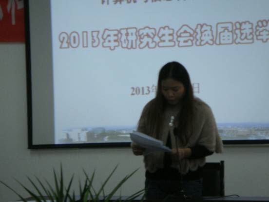 研究生秘书李明勇老师以及11、12和13级研究生出席了此次大会,大会由研究生会文娱和体育部部长陈美莲主持。
