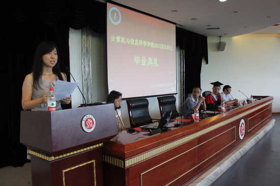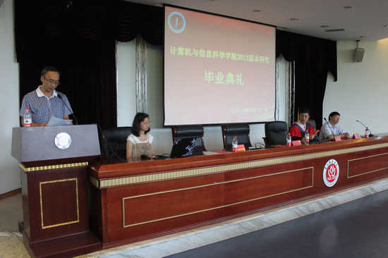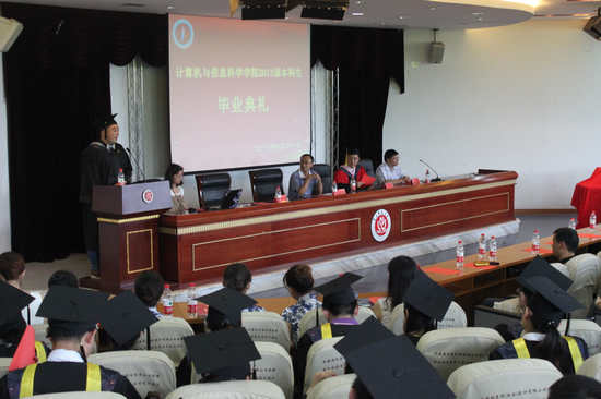 党总支书记刘军,副院长魏延,办公室主任罗世祥,团总支副书记张敬,教师代表李明、陈勇、蕾蕾、龚伟、陈娟娟等,2013届全体毕业生参加本次典礼,典礼由计信世界杯决赛