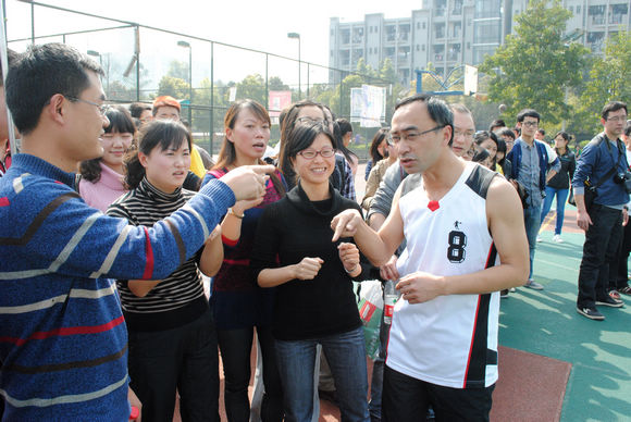 篮球场上,呐喊声、加油声和欢笑声此起彼伏,全校各单位代表队竞争激烈,却又不乏热烈欢快的气氛。在世界杯决赛