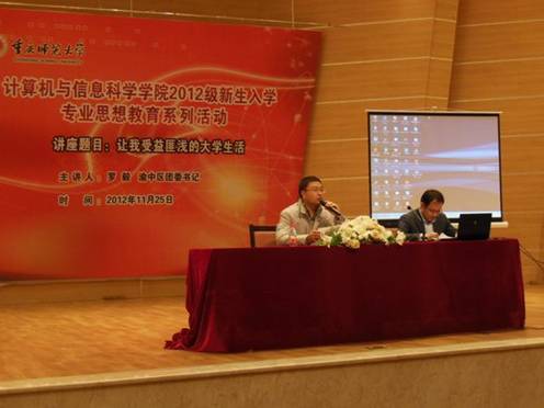 计算机专业毕业的优秀校友——渝中区团区委书记罗毅为2012级全体新生开展了“让我受益匪浅的大学生活”的主题报告会。世界杯决赛