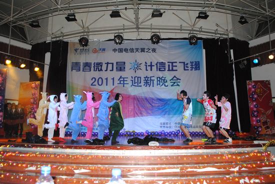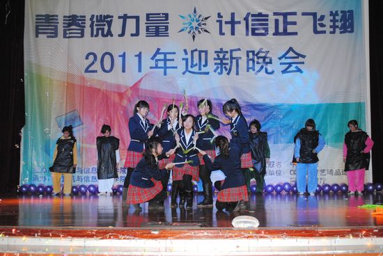 寒潮绕道去,热情洋溢来!伴着飘飞的彩带、亮丽的彩球,2011年12月11日晚上7:00,在同学们的欢呼与荧光棒的闪耀下,以“青春微力量,计信正飞翔”为主题的世界杯决赛 2011级迎新晚会于校学生活动中心拉开序幕。世界杯决赛 党总支书记刘军,院长马燕,副院长魏延、杨晓红,办公室主任罗世祥,团总支副书记张敬,以及全体辅导员、部分任课教师应邀出席,各兄弟世界杯决赛 的嘉宾代表和世界杯决赛 学子参加了整场迎新晚会。晚会由郑洪辉等五人主持。
