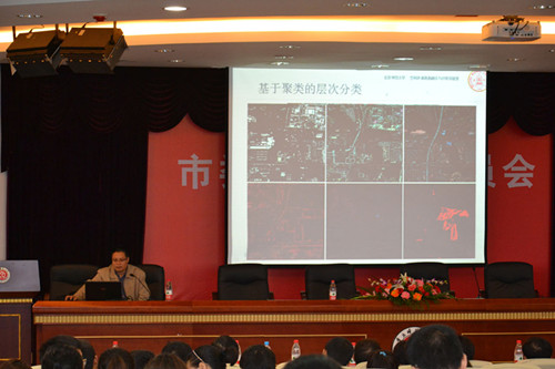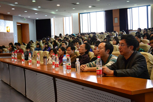 院长马燕主持,各年级学生及电子商务与信息管理系部分老师参与。据马院长介绍,余先川教授现为博士生导师、教育部新世纪优秀人才、九三学社社员,同时担任IAMG中国委员会副主任(筹)、中国数学地质与地学信息处理专业委员会委员、中国地图学与GIS专业委员会委员、中国计算机学会高级会员、IEEE Senior Member,长期从事图像处理(遥感、医学及其他图像)、空间信息挖掘、模式识别(矿产预测)等领域的研究,享有相关领域的专利和软件著作权,主持并参与了各类科研项目和国内学术会议。