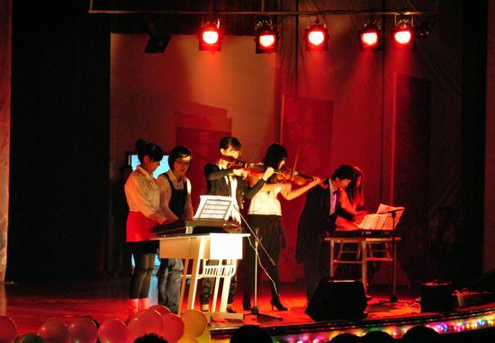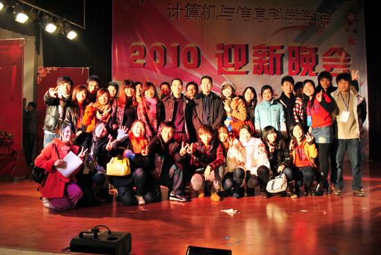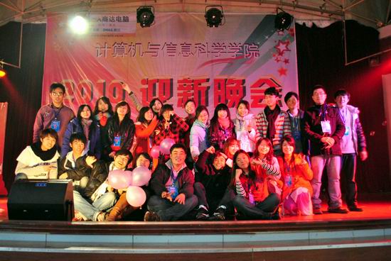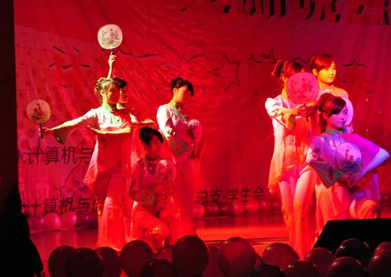 老师、研究生倾情助阵,再次升华了晚会主题。晚会最后,团总支学生会全体成员齐登台,一首《爱因为在心中》在会场久久回荡……
