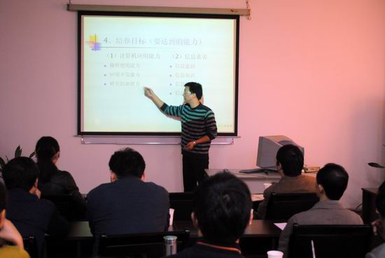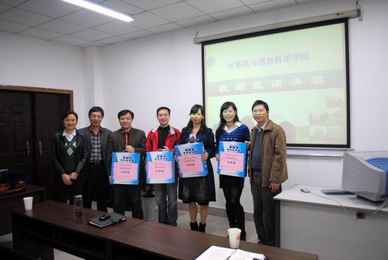 说课竞赛活动。活动分两个阶段进行:第一阶段分组赛,于11月4日下午进行,由各系(计算机基础系、计算机科学与技术系(软件工程系)、电子商务与信息管理系)安排,组织本系45岁以下的所有老师进行说课比赛,根据比赛结果推荐两名教师参加世界杯决赛