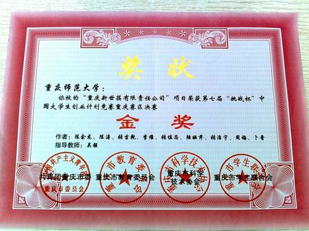 ——听障人士职业培训”、“快乐宝贝有限责任公司”、“重庆新世筷有限责任公司”等3件作品荣获重庆市金奖;“扭动我心校园网络传媒有限公司”荣获重庆市银奖;“重师众科软件系统开发团队商业计划”荣获重庆市铜奖。
