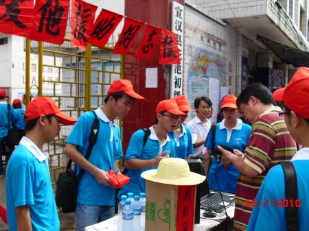 “三下乡”社会实践团队来到了四川省宣汉县花池乡进行留守儿童调研。当天正值花池乡赶集,路过花池乡初级中学门口的时候看到乡亲正在挂“乡情关爱他,捐助胡志佳”的横幅,带队老师上前具体了解情况之后,决定延缓原有调研计划,组织队员全力投入到爱心募捐活动之中,四位计算机专业同学发挥专业优势,帮助宣汉电视台媒体朋友进行设备调试,其他队员兵分两路,沿街实地走访和宣传胡志佳的病情和家庭情况,大力号召乡亲们对其进行帮助,宣传影响面达600多人,同学们耐心的讲解和真挚的感情征得了当地老百姓的认同和支持。接着,世界杯决赛