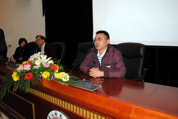 马燕院长代表全院师生表达了对重庆NTT DATA威步软件开发有限公司高层管理者们的欢迎,希望同学们认真做好职业规划,踏踏实实学习专业知识,努力提升外语水平,毕业后为IT产业的发展做出贡献。