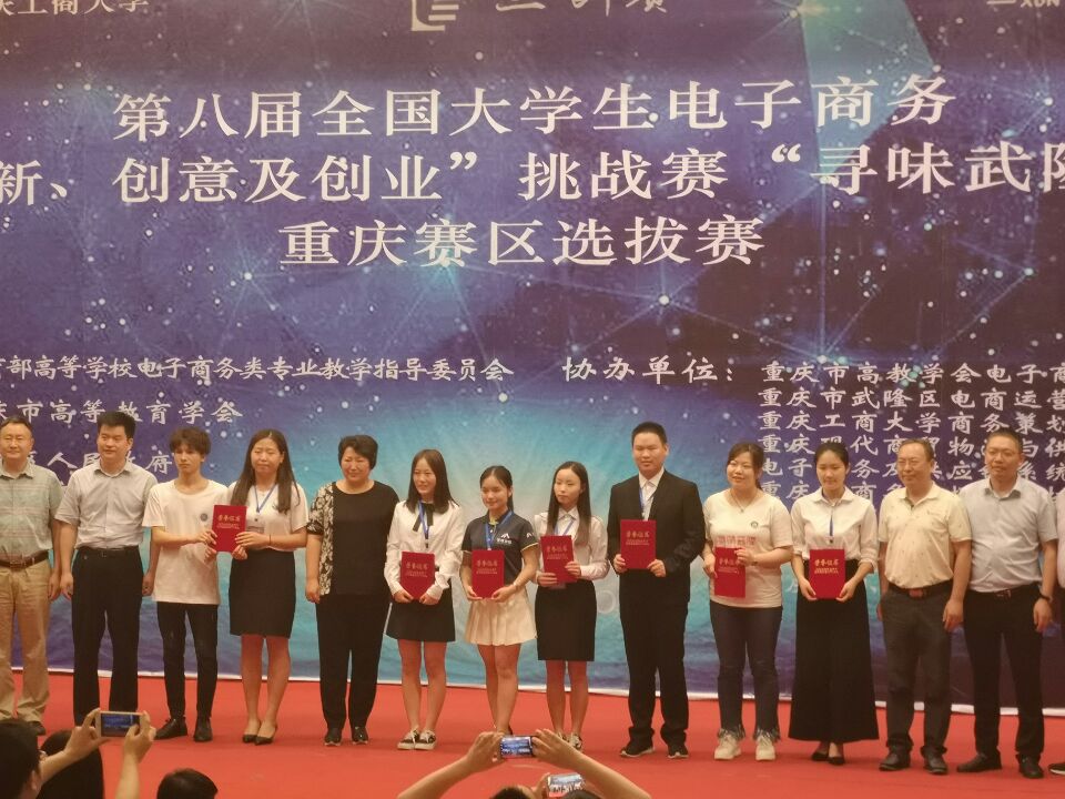 李明教授、唐万梅教授指导的日光电商团队——“秀山小雨伞工作室”获得特等奖,该队将于2018年7月27日代表重庆赛区参加全国总决赛。
