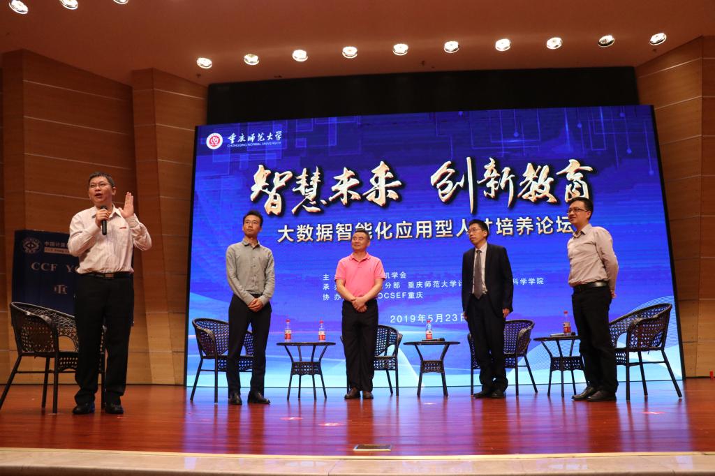 何炎祥教授在报告中对今年来国内外AI发展动态进行了介绍,同时分享了他对于AI及IT新技术发展给高校计算机相关专业教学方法、学生知识结构及其素质能力等方面的教育教学挑战,以及应对这些挑战的一些对策思考。龚振总经理在报告中分享了腾讯在产业互联网领域的探索和实践,并深入探讨在AI、大数据、云计算等前沿技术高速发展的背景下,腾讯校企合作如何助力高校共同探索产业人才培养的新模式。曹骝博士则着眼于大数据和人工智能技术在爆炸式增长趋势给社会带来的巨大变革,结合大数据和人工智能的具体实践,分析大数据应用变化,并提出实验实训教育体系,助推人才培养。文俊浩教授在报告中分析了大数据和人工智能所带来的社会新格局,剖析大数据和人工智能发展的机遇和动因,围绕人才需求趋势变化、新工科专业内涵、新工科专业形成路径、新工科专业特点等,提出新时代大数据智能化人才具备的知识、能力和素养,同时也提出实现培养目标,建设课程体系、培养模式的新方案。八戒教育产教融合总监张伟从技术及产业发展的角度分享以大数据的视角审视时代创新与未来商业发展,围绕数据、数据科技、数据科技与未来商业几个方面展开对大数据内涵和本质的探讨,分析能力边界,挖掘大数据与云计算、IOT、AI及数据应用之间的关系。
