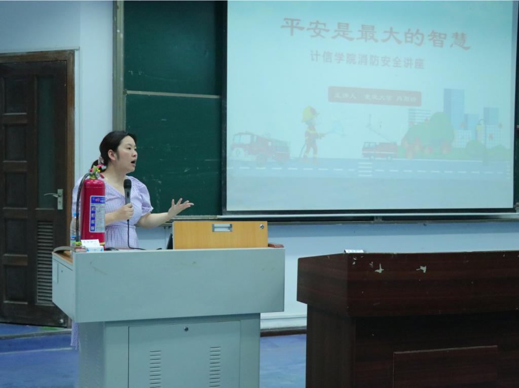 同时开展线上线下消防安全知识宣传。6月14日晚6点,由重庆大学保卫科科长、重庆大学消防宣传中心主讲教师肖雨诗老师、重师消防科科长张国建主讲的 “平安是最大的智慧”消防安全讲座在2018级、2019级、2020级中陆续开展。从消防意识的培养、消防安全的维护和营救、日常行为规范等方面对学生进行了引导和培训。此次消防安全讲座,加强同学们对消防知识的学习同时,让同学们对消防器材有了更直观的了解。