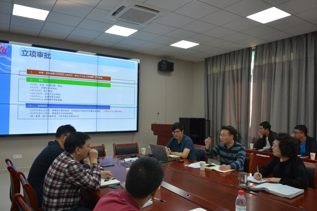 采购与招投标中心主任谭建春、副主任何中飞来院进行采购与招投标业务培训指导。会议在致用楼302会议室举行,世界杯决赛