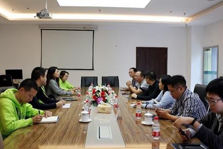 的办学理念、教学组织、实验室建设、招生就业等内容。其中重点展示和介绍了电子商务实训室直播间、图片与视频采集与制作、VR实验等建设思想和软硬件相关配置。最后召开双方座谈,在校企合作、联合培养、商务实训等多个教学领域进行深入交流和探讨。
