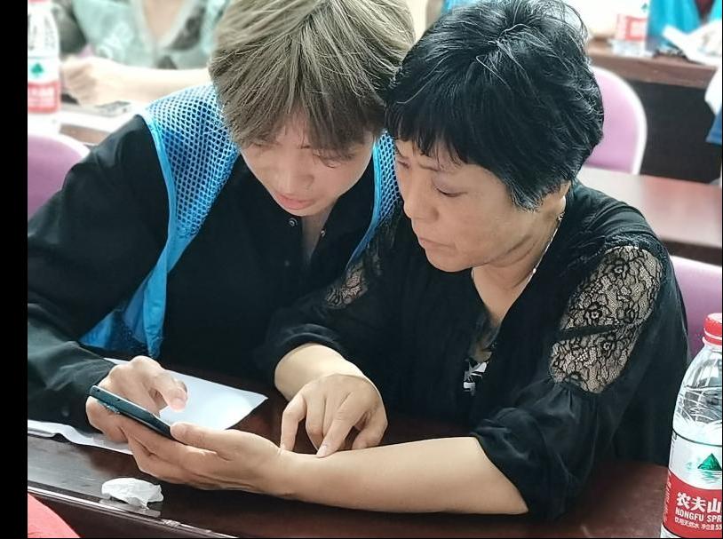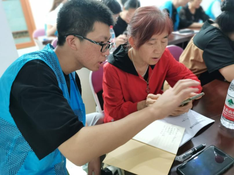“大学生老师来了……”参与培训的社区居民陈阿姨说,“现在高科技越来越多了,我们这些老年人已经跟不上社会的脚步了,我平常就爱拍点抖音,这些高科技软件,运用起来不得诀窍,今天有老师教我们怎么用,我们老年人也可以跨进科技时代了。”