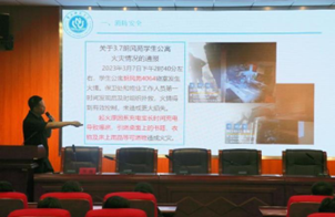 发生的几起寝室火灾案例,对火灾事故进行原因分析,并提醒同学们消除寝室安全隐患,做好安全防范。法治板块,李处长联系实际案例,以案释法,以法论事,增强同学们的法治观念,提高法律意识。最后,李处长着重通过多起诈骗案例向同学们介绍购物诈骗、刷单诈骗、“裸聊”诈骗等高发电信网络诈骗手法,科普了防范电信诈骗的干货知识点,增强了同学们的安全防范意识,提高诈骗鉴别能力,不陷入电信诈骗的陷阱中。