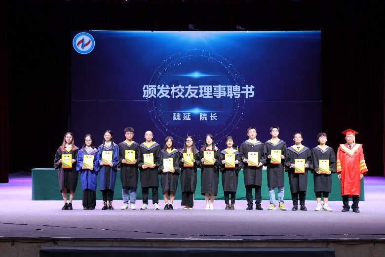 学位委员会授位决定。魏延院长宣读校友理事名单并亲自颁发聘书。随后,魏延院长为毕业硕士生、本科生授予学位并颁发证书,一起合影留念,共同见证2023届毕业生的高光时刻。