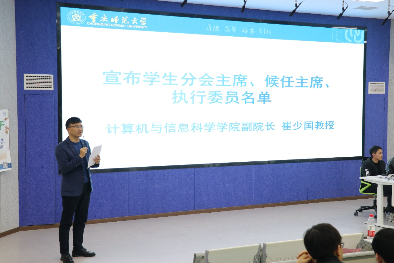 崔少国教授宣布了首届重师学生分会执行委员会名单,并表达了对分会未来发展的期望。