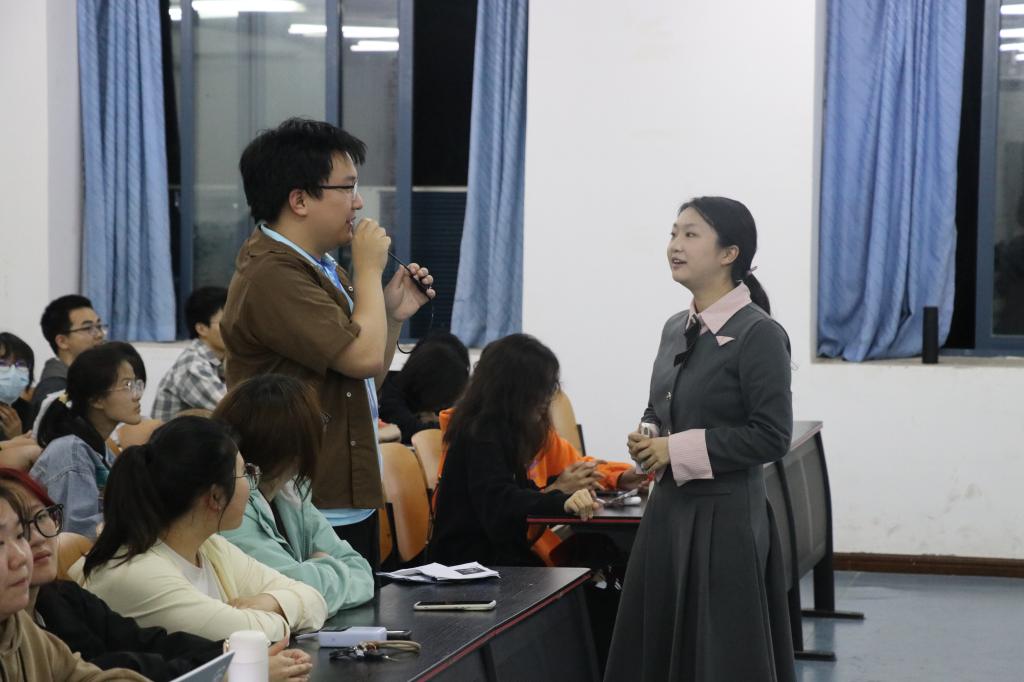 理论宣讲团陈文静以一组案例引出本次宣讲主题,通过层层论述、细致讲解。从网络安全现状、网络安全对策分析两方面出发,通过对具体事例分析、相关案件分享,生动形象地向在场同学讲述了总体国家安全观的重要性,呼吁在场同学要树立正确的网络安全观,提高网络安全意识。现场学生热烈互动,了解了总体国家安全观的内涵和意义。