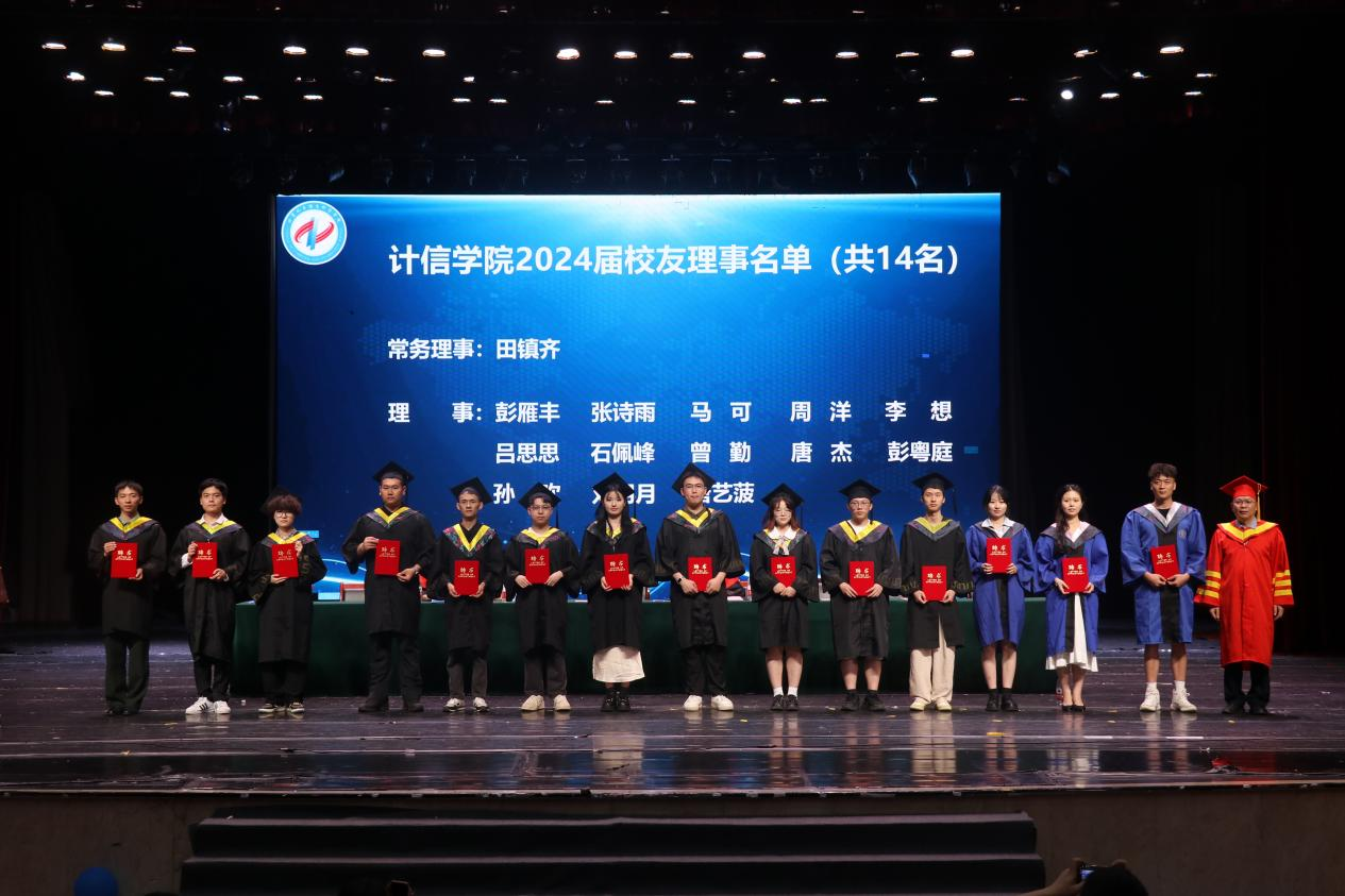 校友分会会长魏延宣读校友理事名单并颁发聘书。魏延院长为毕业生们送上临别寄语。他祝贺同学们顺利毕业,开启人生新阶段;感谢同学们,与世界杯决赛