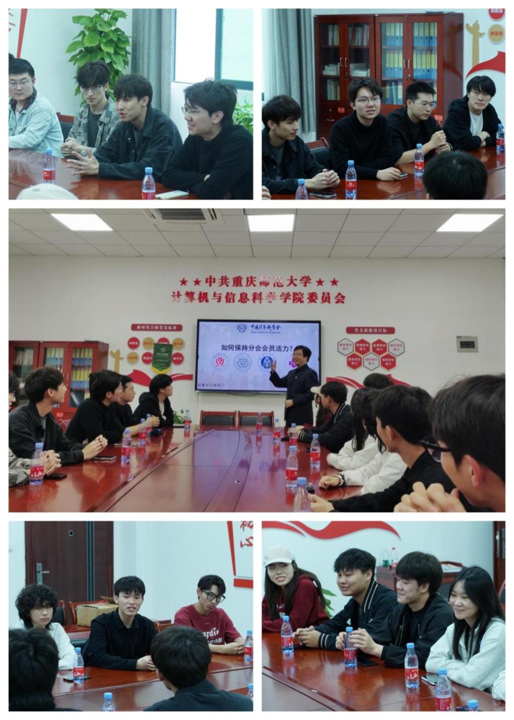 学生分会主席陈俊杉、CCF重庆大学学生分会主席肖银、CCF西南大学学生分会执行委员赵梦涛、CCF重庆电子科技职业大学候任主席唐培皓分别介绍了各校CCF学生分会的基本情况,随后各校代表们在分会建设、活动策划及会员发展等方面的成功经验与挑战进行了激烈的讨论。在活动的最后,世界杯决赛