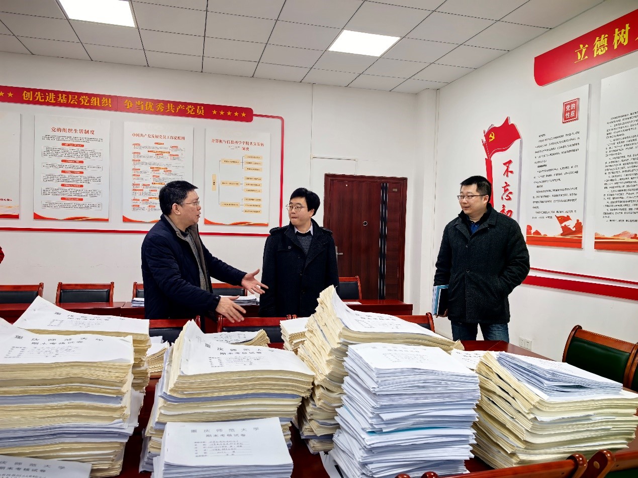 调研会后,贾韬副校长察看了教学评估有关材料准备情况,查阅了试卷资料,深入了解评估工作细节。