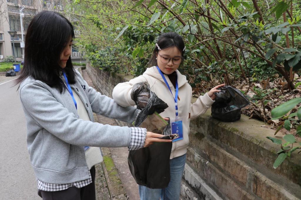 活动期间,同学们积极响应号召,领取垃圾袋、垃圾钳等工具展开清理工作。他们不畏脏累,躬身前行,仔细搜寻并捡拾着校园角落里的各类垃圾。随后,志愿者们前往指定地点,对收集到的垃圾进行科学分类处理。在全体成员的共同努力下,所有垃圾均得到了妥善分类,并拍照认证。