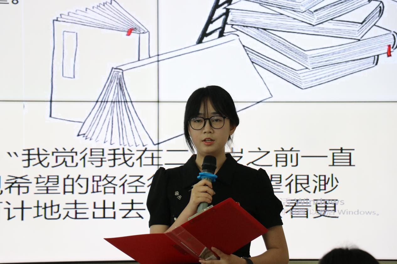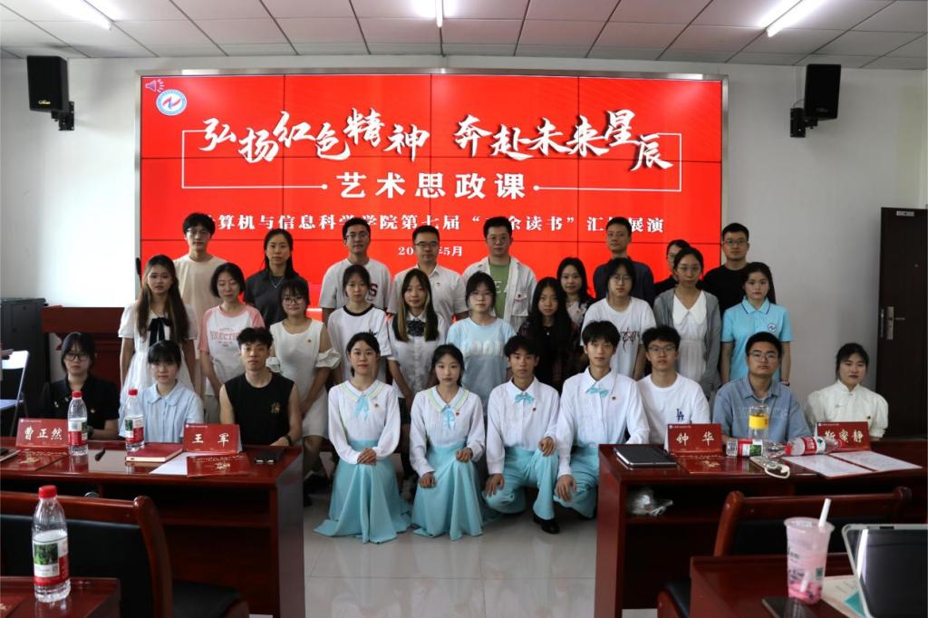 人才培养目标,从锤炼专业素养、厚植文化底蕴、践行社会责任等维度出发,对全体师生提出三点殷切期望:一要“广读博学夯基础”,在专业领域深耕细作,筑牢知识根基;二要“跨界阅读促交叉”,打破学科壁垒,在融合创新中开拓视野;三要“心怀家国读经典”,从红色著作中汲取精神力量,将个人成长融入国家发展大局。活动中,青年马克思主义者培养工程成员朗诵《红岩魂》,以铿锵有力的声音将展演活动的氛围推向高潮,展现了计信学子昂扬向上的精神风貌。在“老师说”环节,曹正然老师向同学们推荐书籍《数学之美》与《浪潮之巅》,希望计信学子带着“止于至善”的追求,让人工智能不只是冰冷的算力,更成为温暖人心的力量;用"亲民"的智慧,让技术扎根本土需求,在科技强国的路上踏出实实在在的脚印。2021级优秀学生代表杨云博、吴嘉玲结合自身经历,分享了高效学习方法和时间管理经验。校友贾磊磊通过讲述他的成长经历和职场经验,启发学弟学妹们“勇于尝试、敢于突破”。