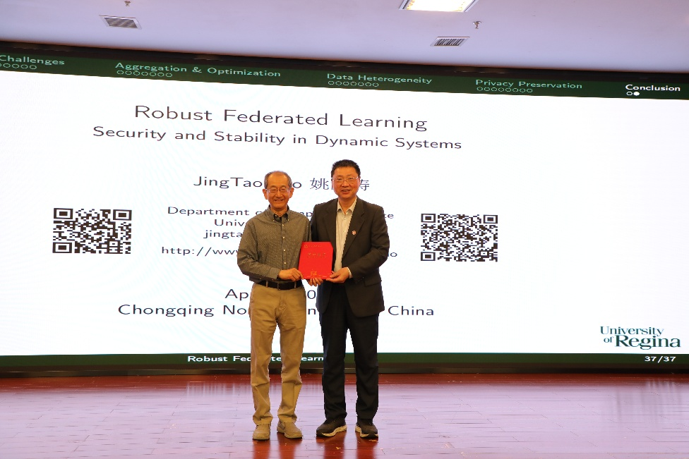 师生带来了深刻的学术启发。他强调,当前人工智能技术正处于快速发展期,联邦学习作为隐私保护机器学习的重要范式,在推动可信人工智能发展中具有广阔前景。最后,王校长激励全校师生以此次学术交流为契机,进一步拓展国际视野,聚焦前沿问题,扎实推动学科交叉融合与科研创新。