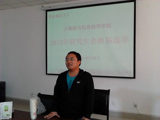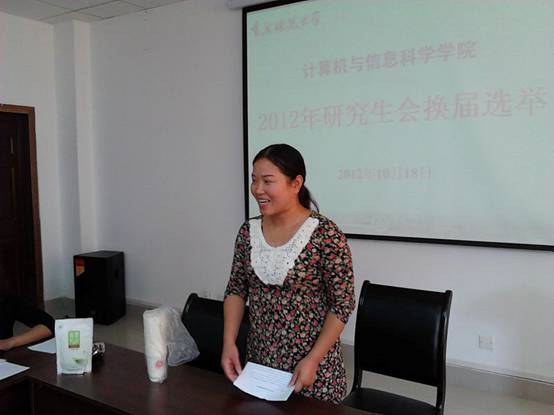 研究生秘书李明勇老师以及10、11和12级研究生出席了此次大会,大会由研究生会学术部部长冉燕辉主持。