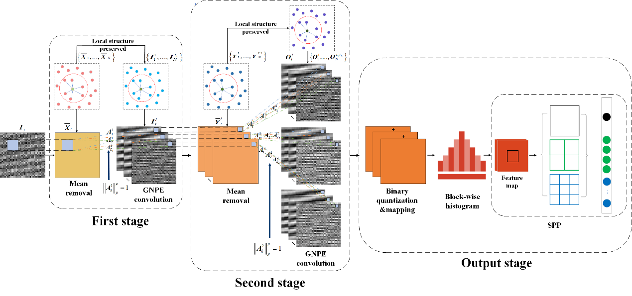 随着现代工业的发展,故障诊断已成为一个重要的研究领域。目前,人们提出了许多故障诊断方法。作为一种旨在克服卷积神经网络(CNN)高计算复杂性的方法,PCANet 也被应用于故障诊断领域。PCANet 的核心算法是主成分分析(PCA)算法。然而,PCA 是一种全局结构降维方法,不能有效分析数据的局部空间几何结构,甚至可能削弱或破坏局部结构信息。此外,基于 L2范数的算法对噪声和异常值非常敏感。针对这些问题,首先提出了一种基于 Lp范数的广义邻域保留嵌入(GNPE)方法,并将其用于学习 CNN 的卷积滤波器。通过这种方法,我们提出了一种具有局部结构的新型卷积神经网络,即广义邻域保持嵌入网络(GNPENet)。我们在三种类型的五个数据集上进行了故障诊断实验,全面评估了所提出的 GNPENet 方法。实验结果表明,与一些最先进的模型相比,GNPENet 具有更好的特征提取和泛化能力。GNPENet模型主要架构见图1。成果论文题目为“GNPENet: A Novel Convolutional Neural Network with Local Structure for Fault Diagnosis”。
