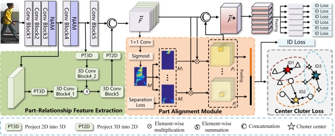 该研究为了提取判别特征和域不变特征的同时,保留多个细粒度信息,实现有效的领域泛化,精心设计了归一化缓解模块,采用专用通道关注机制来指导实例归一化改良,进而保护好身份判别性信息;然后,利用部分关系特征提取模块有效地捕获不同身体部位之间的复杂关系;最后,在模型中引入了部件对齐模块,以生成不同身体部位之间的精确对齐映射,帮助模型识别不同人体部位之间的细微差别。这三个模块产生多个细粒度的视觉融合功能,显著提升了模型在行人重识别任务中的泛化能力。实验结果表明,该框架在Market-1501、DukeMTMC-reID等主流数据集中均展现出显著优势,验证了该方法对多细粒度特征的有效提取。