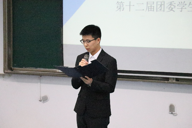 会议伊始,第十二届团委学生书记蒋承志进行了工作汇报,蒋承志从两个方面对第十二届团委工作进行了总结,一是推动团学思想组织建设,做到思想责任能力三到位;二是落实六大育人体系,打造计信特色活动。他表示计信世界杯决赛