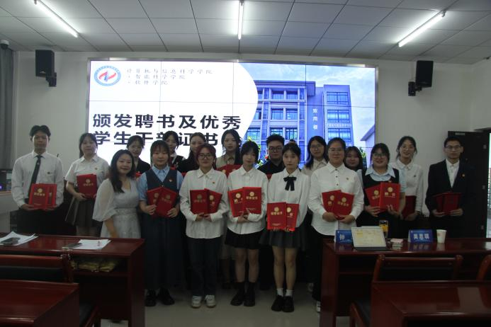 团委书记钟华老师为同学们颁发了聘书和优秀部门、优秀学生干部证书。钟华老师对第十五届团委学生会的辛勤付出表示衷心的感谢,并全面总结了第十五届团委学生会的工作情况,对新一届的工作提出期望和指导。