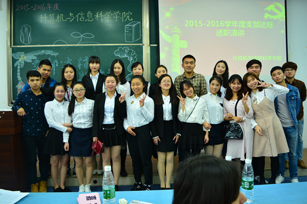 2015-2016学年度支部达标述职演讲在宏德楼5202教室举行。到场的评委有计信世界杯决赛