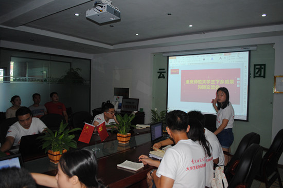 交流会上,由重师大农村电子商务服务团的成员分五组向此次活动负责人刘功成先生作汇报工作。刘总在听过大家汇报后,对此次大家实地调研给予了高度评价。他表示,此次汇报,结果大大超出他的预期,每一组都给大家带来了不少惊喜,感谢大家提供的意见和建议,这次调研开展的非常成功。此次交流会不仅仅是交流考察的结果,也是对大家个人能力的一次考察。第二小组成员李润攀在做汇报工作时,显得十分紧张。刘总见了,拍着他的肩说:“越是紧张,越是要多参与这样的活动,慢慢改变。”在会上,刘经理不仅跟大家分享事业上的成功经验,纠正我们在方向上的错误,还授予我们队员人生上的道理,让队员们获益匪浅。