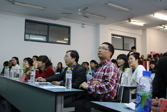 各位参赛选手准备充分,教学思路清晰,教学过程风趣合理便于听者接受,同时也展示了卓越的口才,美观大方的板书,潇洒自然的姿态。有些选手对台下的观赛学生甚或老师进行课堂互动,活跃现场气氛。当每一位参赛者结束讲课展示后,评委老师们整合意见,以自身经验与感悟给出真诚中肯的点评,鼓励长处,勉励不足,让同学们受益匪浅。最后,11级计师陈海燕同学以286分脱颖而出摘得冠军。