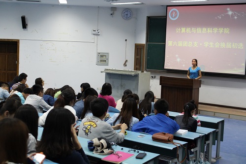 于2014年5月25日晚7:30,在弘德楼5205教室举行了第六届团总支学生会换届初选大会。出席本次大会的评委有辅导员朱嘉洁、傅帆老师及世界杯决赛