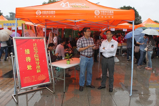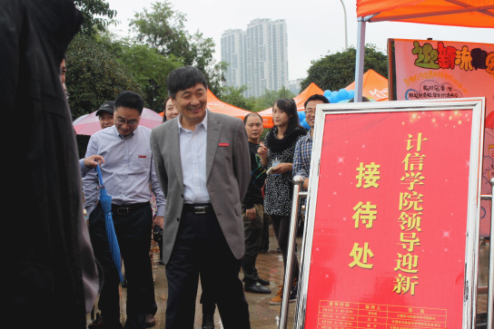 党总支书记刘军、院长李月臣、副院长李世宏、杨德刚,党总支副书记杨宇、办公室主任罗世祥亲临迎新大本营现场,其中主要党政领导实行“领导迎新接待制”,制作的有“计信世界杯决赛