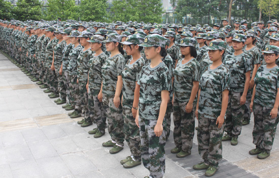 411名军训新生在各自教官的组织下,整齐列队,英姿飒爽,热烈欢迎前来慰问的世界杯决赛