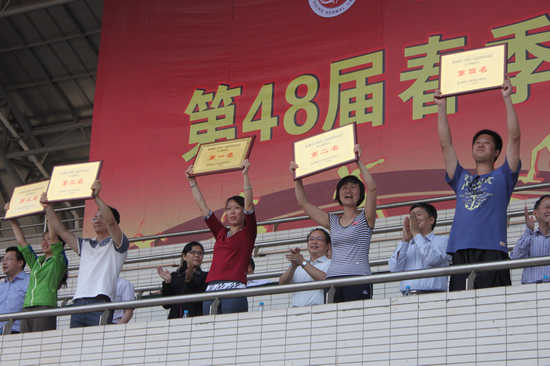 一举夺得“组织奖”、“教工团体第一名”、“学生男子团体第二名”、“女子团体第七名”四项佳绩。