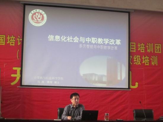 院长马燕特在图书馆报告厅开展了主题为“信息化社会与中职教育改革”的讲座。