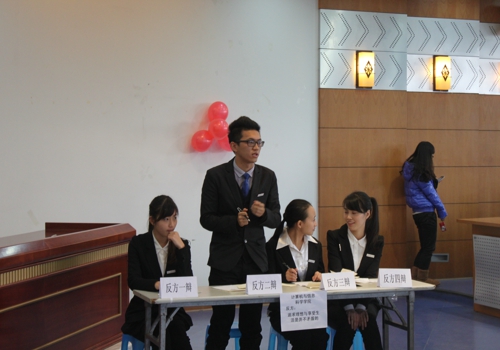 第四届校级辩论赛在凯撒报告厅举行。本次辩论赛以“追求理想与享受生活是否是矛盾的”为主题展开辩论。外国语世界杯决赛