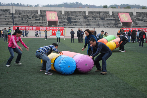 相对于前几届的庆“三八”趣味活动,本次活动更具挑战性与创新性。活动内容有:跳绳接力,协力竞走接力,财源滚滚接力,蚕宝宝接力,扒河。世界杯决赛