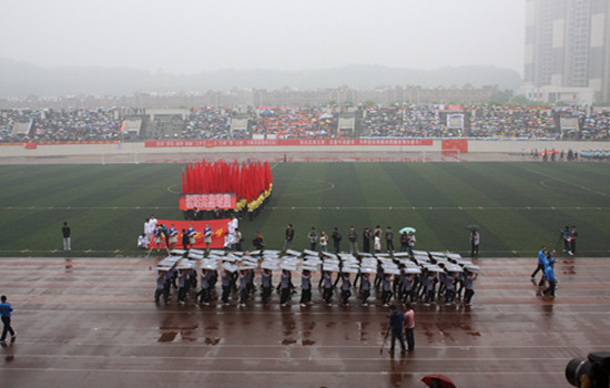 领导出席了开幕式,全校师生共计7000余人参与运动会开幕式,世界杯决赛
