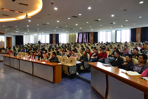 院长马燕主持,各年级学生及电子商务与信息管理系部分老师参与。据马院长介绍,余先川教授现为博士生导师、教育部新世纪优秀人才、九三学社社员,同时担任IAMG中国委员会副主任(筹)、中国数学地质与地学信息处理专业委员会委员、中国地图学与GIS专业委员会委员、中国计算机学会高级会员、IEEE Senior Member,长期从事图像处理(遥感、医学及其他图像)、空间信息挖掘、模式识别(矿产预测)等领域的研究,享有相关领域的专利和软件著作权,主持并参与了各类科研项目和国内学术会议。