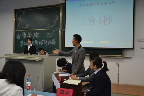 经过一场场激烈的角逐,在评委们的谨慎抉择下,持“乐业才能安居”观点的11级电子商务(应用技术)专业、持“大学生广泛社交利大于弊”观点的10级电子商务专业、持“能屈能伸方是英雄本色”观点的11级信息管理与信息系统专业、持“机遇和实力,实力更重要”观点的10级信息管理与信息系统专业、持“治贫比治愚更重要”观点的10级电子商务(应用技术)专业、持“以成败论英雄是不可取的”观点的10级计算机科学与技术专业略胜一筹,获得晋级下一轮比赛的“入场券”。