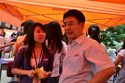 与家长的双边管理,交谈中还安排工作人员为家长倒水,让家长和新生感受到了世界杯决赛