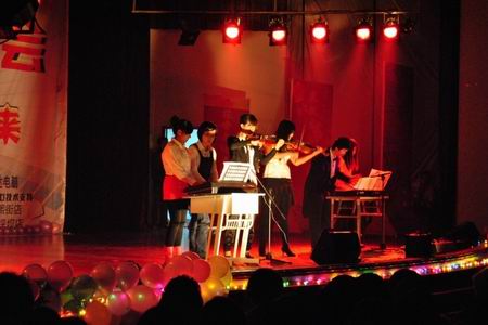 老师、研究生倾情助阵,再次升华了晚会主题。晚会最后,团总支学生会全体成员齐登台,一首《爱因为在心中》在会场久久回荡……