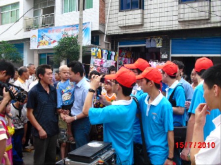 “三下乡”社会实践团队来到了四川省宣汉县花池乡进行留守儿童调研。当天正值花池乡赶集,路过花池乡初级中学门口的时候看到乡亲正在挂“乡情关爱他,捐助胡志佳”的横幅,带队老师上前具体了解情况之后,决定延缓原有调研计划,组织队员全力投入到爱心募捐活动之中,四位计算机专业同学发挥专业优势,帮助宣汉电视台媒体朋友进行设备调试,其他队员兵分两路,沿街实地走访和宣传胡志佳的病情和家庭情况,大力号召乡亲们对其进行帮助,宣传影响面达600多人,同学们耐心的讲解和真挚的感情征得了当地老百姓的认同和支持。接着,世界杯决赛