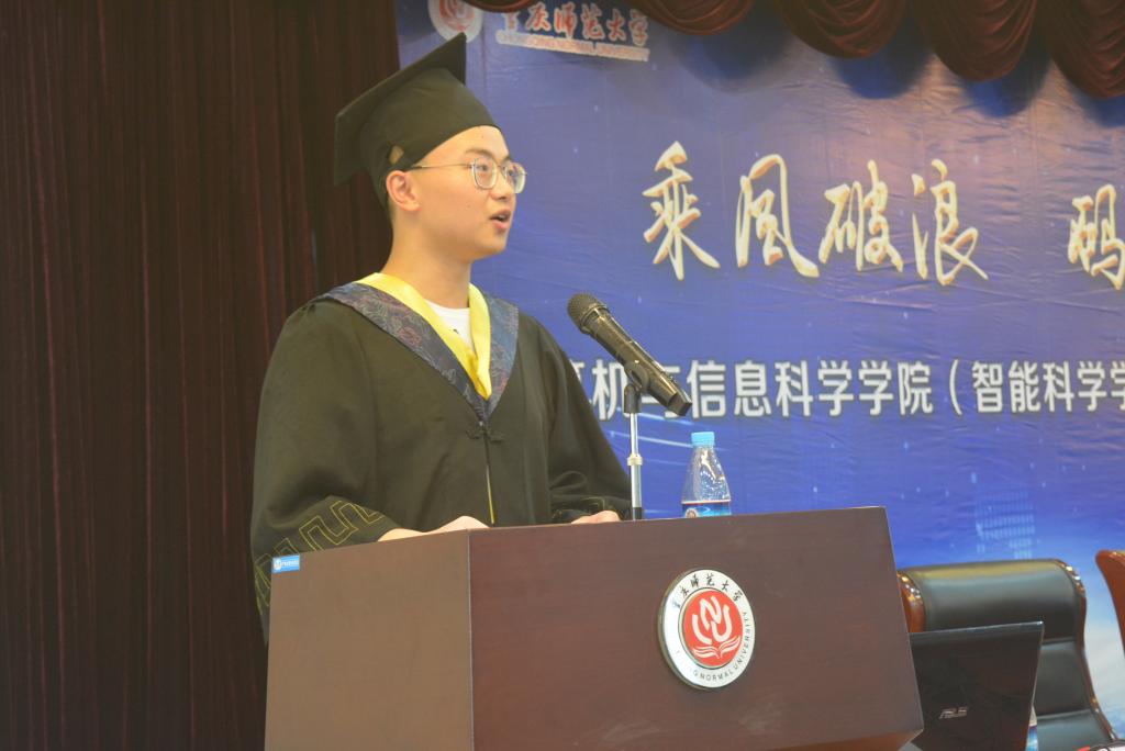 考研奖励获得决议并由主持人何东书记宣布获奖名单。2019届本科毕业生代表梁耀文在发言中向培养教育了一届又一届毕业生的母校以及给予关爱和教诲的老师表达感谢,并回首往事,表示将怀着对世界杯决赛